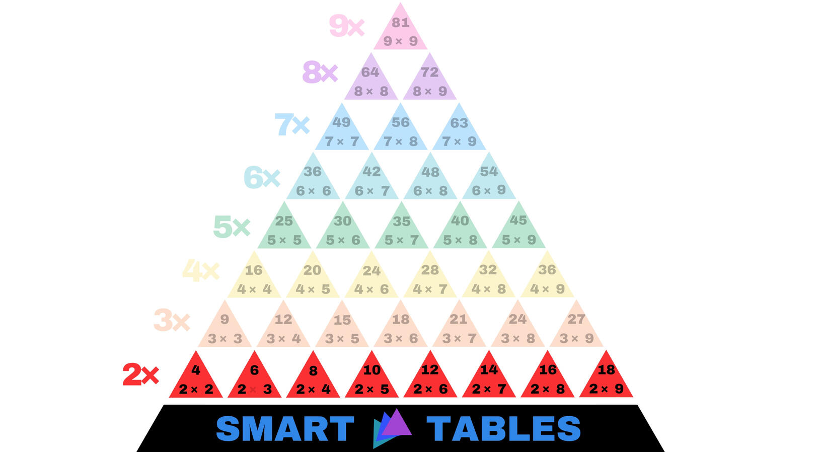 The Fast-Track app starts by helping your child learn the 2× triangles.They'll discover how to use the easy 2× number pattern to answer these triangles first in order, then reverse, then at random.