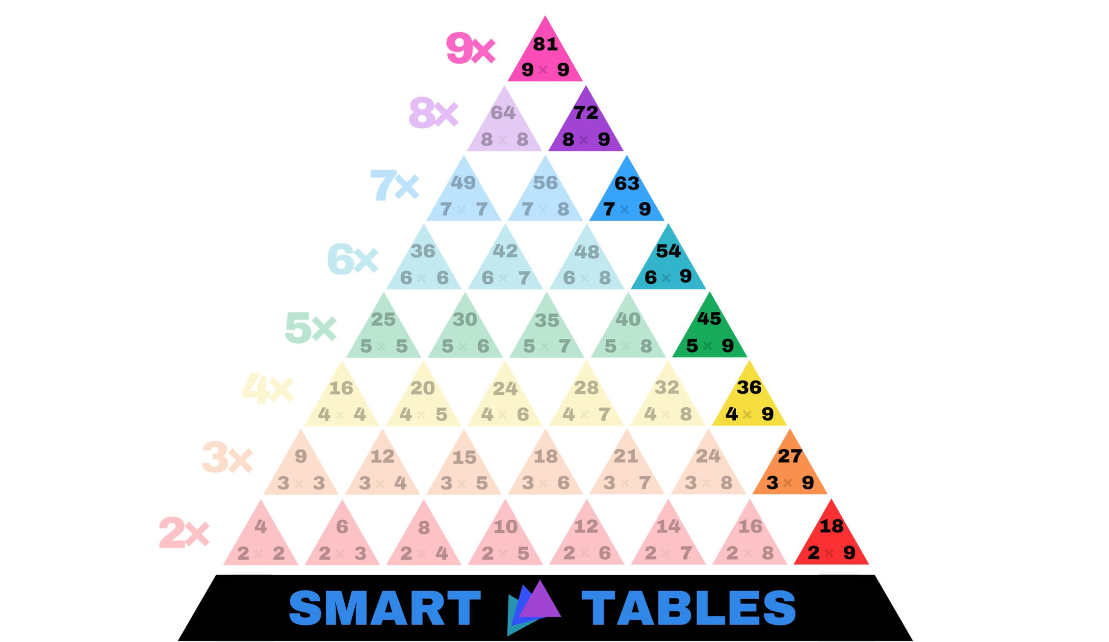 The 9× answers are super easy to remember once children see a simple pattern.In step 3 your child will learn a simple rule to quickly give the answer to any of the 9× triangles.